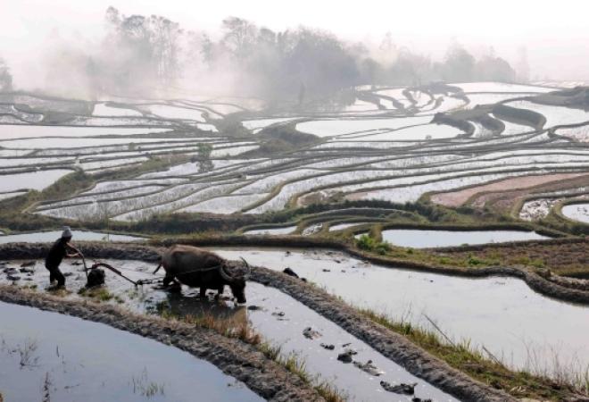 نشرت مواقع اعلامية مجموعة صور مبهرة ومشاهد تخطف الانفاس من حقول المدرجات الموجودة في إحدى مقاطعات غرب الصين.