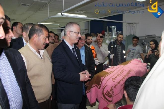 قام رئيس الوزراء رامي الحمد الله اليوم الجمعة، بزيارة مستشفى الزكاة للوقوف على حالة المصابين في حادث للسير وقع في مدينة طولكرم، والذي خلّف خمس إصابات بينهم حالة خطيرة، لعائلة من مدينة الخليل.