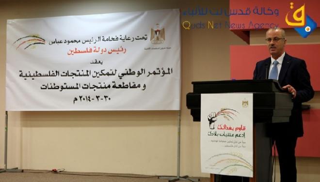 واضاف الحمد الله ان هذا المؤتمر يشكل حلقة هامة في الصمود الوطني، والعمل اليومي الحثيث في التصدي للسياسيات الاسرائيلية التوسعية الاستيطانية، وضمن جهود القائمين عليه من اصحاب الضمير الوطني الذين يراكمون الخطوات لتطوير استراتيجية موحدة للعمل الوطني الهادف الى مقاطعة منتجات وبضائع المستوطنات واعتماد المنتج الوطني، مشيرا الى ان كل 30 الف دولار يتم استهلاكها من منتوجات المستوطنات، في حال تطبيق المقاطعة فعليا ستوفر فرصة عمل جديدة لمواطن فلسطيني.