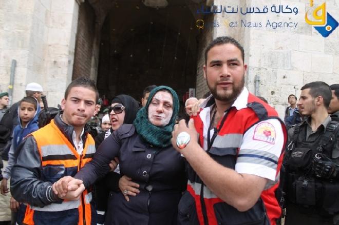 وأفادت مراسلتنا بان العشرات من الشبان والفتية والنساء وممثلي المؤسسات المقدسية شاركوا في الوقفة وخلال انطلاقهم في احياء البلدة القديمة قام جنود "حرس الحدود" بمنعهم واندلعت اشتباكات بالأيدي بين النساء وجنود الاحتلال، فيما قام احد الجنود برش غاز الفلفل على وجه السيدة إلهام أبو صبيح واصيبت بحروق وتم نقلها لمستشفى المقاصد لتلقي العلاج حيث وصفت حالتها بالمتوسطة.