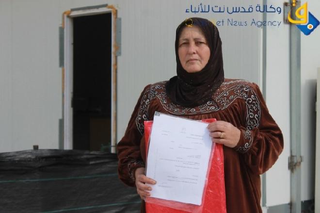 وأضافت:" بأن عائلتها قامت بإفراغ بعض الاثاث من المنزل اليوم لتنفيذ قرار الهدم غدا الاثنين ، مؤكدةً "بأنها لن تترك أرضها حتى تكون بين أيدي سلطات الاحتلال وستعيش في خيمة وتتحمل صعوبات الحياة التي تفرض من قبل سلطات الاحتلال."
