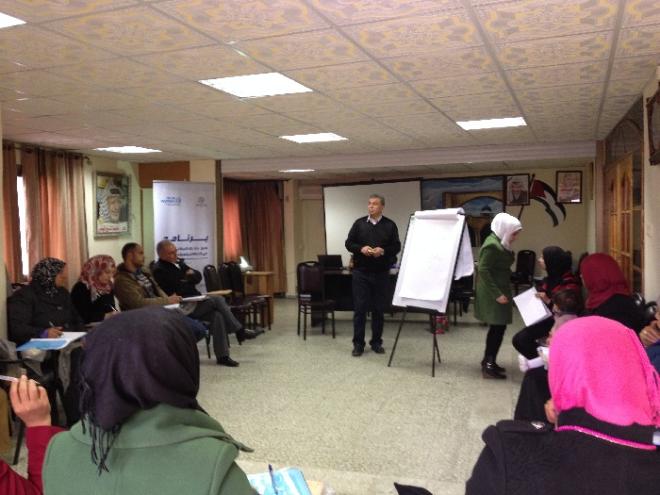 ضمن سلسلة من فعاليات البرنامج العديدة جاءت أنشطة وفعاليات التدريب التي أدارها الإتحاد وقام بتنفيذها المختصون من مؤسسة الدرب للاستشارات والتدريب السيدة علياء السكسك والأستاذ عارف جفال لتخاطب عدّة محاور من أبرزها كيفية تصميم وكتابة المشاريع وما يتناسب من الأدوات اللازمة لتجنيد التمويل أو التبرعات ومدى أهميّة التحفيز الذاتي واستثمار الوقت، بالإضافة إلى كيفية تقييم واقع وقدرات الهيئات المحلية ولماذا يتوجب على المجالس بناء خطط التمويل مع التعمق في مبادئ وأساسيات التخطيط بكل جوانبه لبناء وكتابة المشاريع ووضع الموازنات بناءاً على الاحتياجات لتمكين سيداتنا الفلسطينيات من تقديم مقترحات مشاريع ترتقي لمستوى التمويل فور الإنتهاء من الدورة.