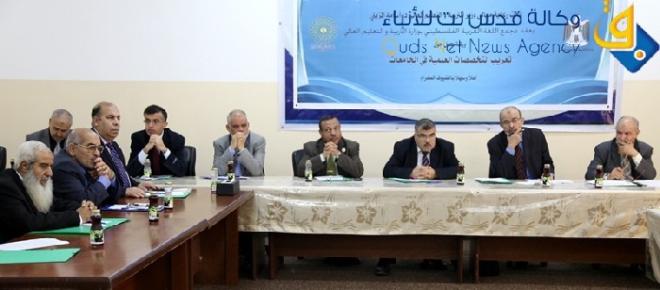وعقد مجمع اللغة العربية الفلسطيني التابع لوزارة التربية والتعليم العالي بمقر الوزارة بغزة الورشة بمشاركة نخبة من أساتذة الجامعات، في التخصصات العلمية والإنسانية، بحضور رئيس المجمع يوسف رزقة, و تخلل الورشة عرض العديد من الأوراق البحثية والنقاشات, وتأتي هذه الورشة تحت رعاية وزير التربية والتعليم العالي أسامة المزيني.