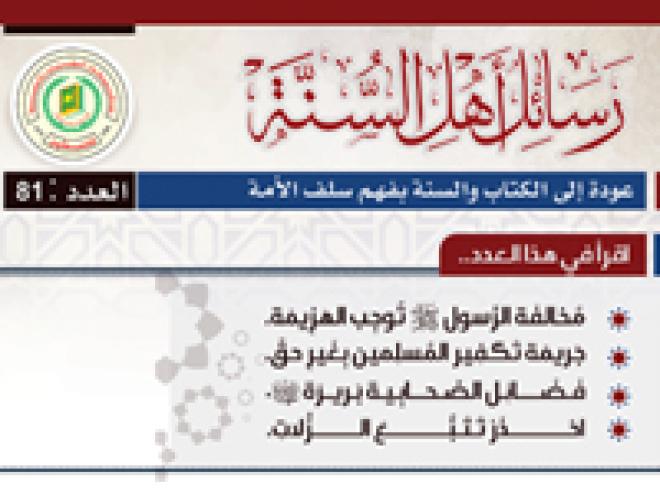 أصدرت الدائرة العلمية بجمعية دار الكتاب والسنة العدد81 من مجلة رسائل أهل السنة، وذلك عن الأشهر محرم، صفر، ربيع أول لعام 1435هــــ، وفي إطار جهودها الدعوية المتواصلة لخدمة الإسلام والمسلمين.