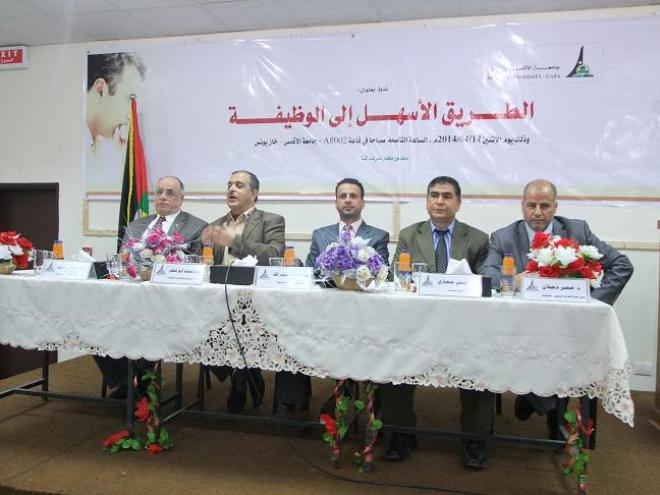نظم قسم الإشراف التربوي بجامعة الأقصى ندوة بعنوان "الطريق الأسهل للوظيفة"، بحضور أستاذ المناهج وتكنولوجيا التعليم محمد أبو شقير، ومدير مديرية تعليم شرق خان يونس سعيد حرب، ومساعد عميد كلية التربية محمود خلف الله ، ورئيس قسم الاشراف التربوي عمر دحلان، وجمع من مدراء المدارس الحكومية ووكالة الغوث ،وعدد من طلبة الجامعة.