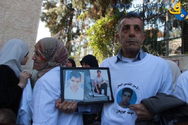 وقال أمجد أبو عصب رئيس لجنة أهلي الأسرى والمعتقلين المقدسيين في كلمته:" إن عدد الأسرى المقدسيين يبلغ 294 أسيرا، منهم 36 محكوم بالمؤبد وأسيرين مضى على اعتقالهما أكثر من 20 عاما، و40 طفلا تحت سن 18 عاما، و 3 أسيرات، اضافة الى 35 اسيرا مريضا" موضحا بان وأصغر الأطفال المعتقلين سنا هو ليث خالد جمال حسيني من مخيم شعفاط، لم يكمل الـ 15 عاما، فهو من مواليد 27/7/1999م، ويقبع حاليا في سجن "الشارون"، وقد حكمت عليه المحكمة الإحتلالية بالسجن تسعة أشهر.
