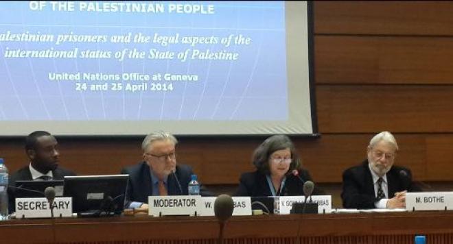 وذكر أن الاجتماع هذا اليوم انعقد بمشاركة عدد كبير من خبراء القانون الدولي الإنساني وقضاة سابقين من مختلف بلدان العالم، وبمشاركة مؤسسات وجمعيات حقوق الإنسان الفلسطينية وبحضور رئيس بعثة فلسطين الدائمة للأمم المتحدة في جنيف السفير إبراهيم خريشة، ورئيس بعثة فلسطين الدائمة للأمم المتحدة في نيويورك السفير رياض منصور.