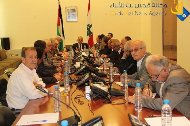 وتناول الاجتماع الذي اقيم بمقر السراي الكبير في بيروت، البحث التأكيد على حق العودة ورفض التوطين وكذلك الأولويات الحياتية للاجئين الفلسطينيين والجهود الآيلة للحفاظ على الحالة الفلسطينية خارج دائرة التجاذب السياسي، وبحث المجتمعون في أوضاع المخيمات وتأثير الأزمة السورية عليها من النواحي الحياتية والصحية والبيئية والتعليمية واتفق الجميع على ضرورة الحفاظ على قنوات التواصل وحصر الملف الفلسطيني بجهة واحدة تتولى معالجة كافة الشؤون المتعلقة بالوجود الفلسطيني في لبنان لدرء أي خطر من شأنه التأثير على أمن واستقرار لبنان.