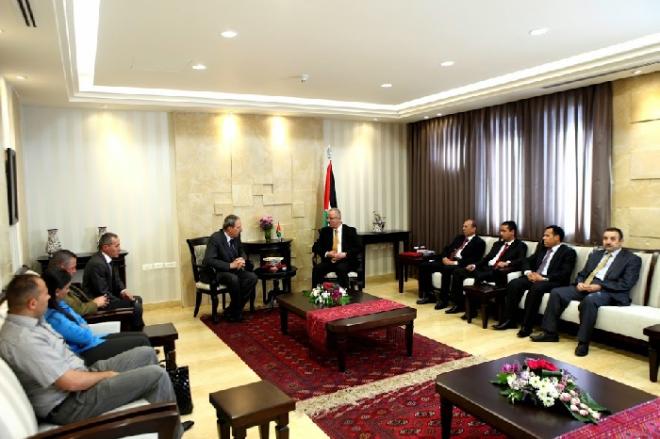 التقى رئيس الوزراء الفلسطيني رامي الحمد الله، اليوم الأربعاء في مكتبه برام الله، وفدا برلمانيا اردنيا برئاسة النائب الاردني جميل النمري رئيس لجنة التوجيه الوطني والإعلام النيابية والوفد المرافق له.