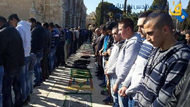 وأكدت مراسلة "وكالة قدس نت للأنباء" في القدس المحتلة، أن 55 ألف مصلي أدوا الصلاة في رحاب المسجد الأقصى المبارك، وذلك رغم القيود والاجراءات العسكرية المشددة على أبواب المسجد.