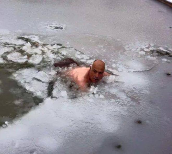 ابو جهاد أعاد الكره مرة أخرى في السباحة في الثلج، بعد ان قام بالسباحة في بركة من الثلج في العاصفة الثلجية "اليكسا" العام الماضي.