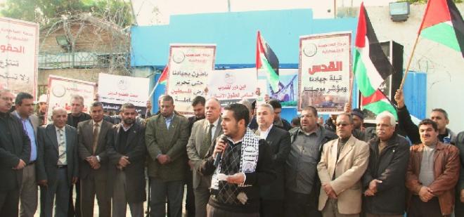 وأوضحت الفصائل خلال وقفة تضامنية مع أهالي الضفة الغربية والقدس المحتلة، أمام مقر الأمم المتحدة في قطاع غزة بمناسبة اليوم العالمي لحقوق الانسان، أن الشعب الفلسطيني منزوع الحقوق وأن تلك القوانين التي يتحدث عنها المجتمع الدولي لا يطبق شيء منها لصالح الفلسطينيين، وإنما تخدم الإجرام الإسرائيلي.