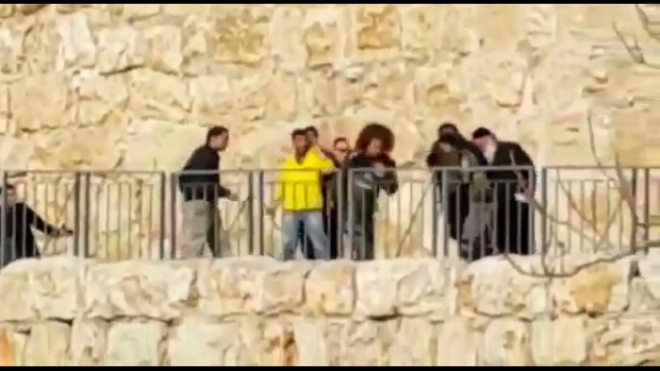 اظهر مقطع فيديو مجموعة من المستوطنين اليهود المتطرفين وعناصر الشرطة الاسرائيلية يعتدون على منفذي عملية الطعن في منطقة باب الخليل في البلدة القديمة بالقدس المحتلة قبيل استشهادهما.
