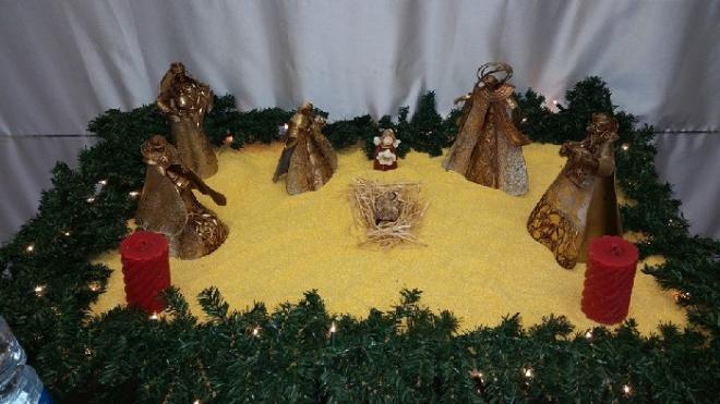مسلمون، ويهود، ومسيحيون وعلمانيون، يتبادلون التهاني والأماني بالسلام في العالم، وهم يجتمعون حول لوحة تمثل حدث ميلاد المسيح (presepe).