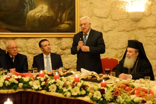 في كلمته خلال ترؤسه قداس منتصف الليل لأعياد الميلاد المجيدة للطوائف المسيحية التي تسير وفق التقويم الشرقي، بحضور الرئيس الفلسطيني محمود عباس(أبو مازن) قال البطريرك ثيوفيلوس الثالث : "تستنكر كنيسة المسيح جميع مظاهر العنف البشعة التي تقع على كافة البشر الأبرياء في منطقة الشرق الأوسط والعالم أجمع، وتستنكر وتشجب الحرب وكل أشكال العنف".