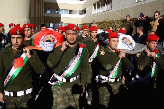 وانطلق موكب تشييع الشهيدين من المستشفى الأهلي في مدينة الخليل، بمراسم عسكرية، ومن ثم نقلا الى منزليهما في بلدتي سعير والشيوخ، وبعد إلقاء نظرة الوداع الأخيرة عليهما، أدى المشيعون صلاة الجنازة على جثمانيهما قبل أن يواريا الثرى بمقبرتي الشهداء في البلدتين.