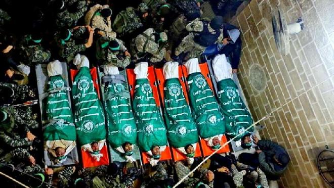 شيّعت جماهير غفيرة من قطاع غزة، بعد صلاة الجمعة، شهداء كتائب القسام السبعة الذين ارتقوا قبل يومين إثر انهيار نفق عليهم بمدينة غزة.