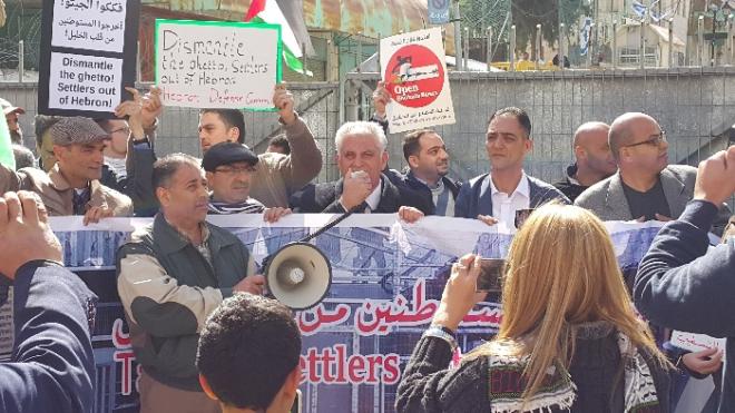 وكان النائب بسام الصالحي وخلال كلمة له في المتظاهرين المحتشدين أمام بوابات المستوطنة على مدخل شارع الشهداء، قال:" أتينا اليوم هنا لنؤكد معكم أيها المناضلون وأيتها المناضلات، أنه ومهما بلغت جرائم الاحتلال وعصابات المستوطنين في الخليل وغيرها من أراضي دولتنا الفلسطينية المحتلة، فان إرادة أهل الخليل وكل شعبنا أقوى من كل اساليبهم الفاشية وجبروت آلتهم العسكرية."