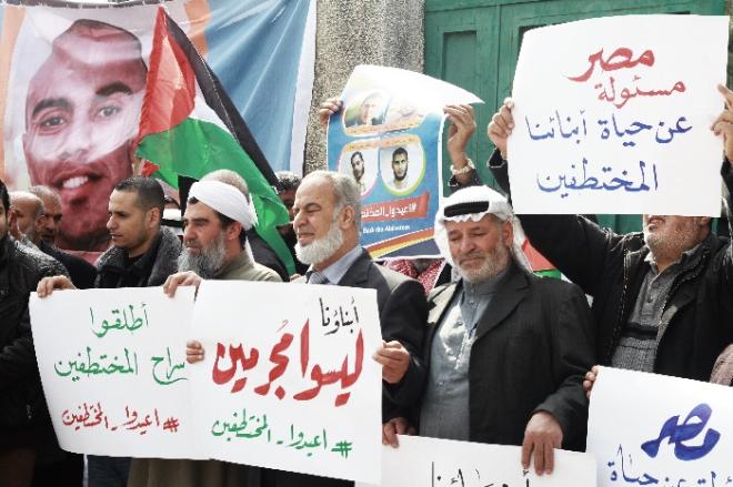 وناشد التجمع السلطة الوطنية الفلسطينية والرئيس الفلسطيني محمود عباس، بتحمل مسئولياتهم والقيام بواجباتهم اتجاه ملف المختطفين الأربعة والعمل على الإفراج عنهم، مطالباً مصر بالاستجابة لصوت الضمير الإنساني وبذل كل الجهود للكشف عن مصيرهم، وإعادتهم سالمين لأهلهم.