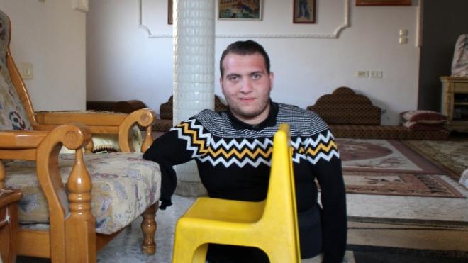 يوسف (20 عاما) وُلد دون قدمين وبنصفي ذراعين، لكنه يقوم بأكثر من 90% من المهام اليومية التي يؤديها الأشخاص العاديون، ولا يجد كثيرا من العناء في ذلك.
