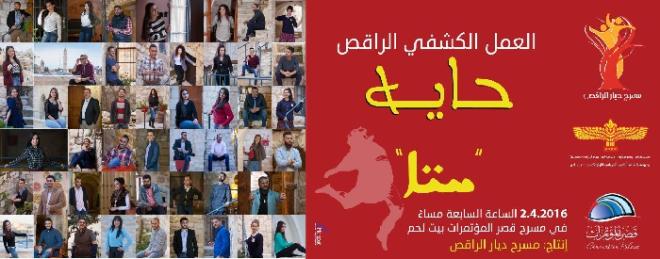 يستعد مسرح ديار الراقص وبالشراكة مع مجموعة كشافة النادي السريان الارثوذكسي - بيت لحم وقصر المؤتمرات - بيت لحم لإطلاق أضخم عمل كشفي راقص بعنوان "حايه"، الذي هو مزيج ما بين الدبكة الشعبية الفلسطينية والحركة والايقاع الكشفي ذو الطابع الاحتفالي.