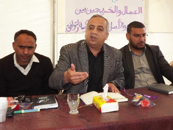 وقال: "إن معاناة عمال فلسطين تجاوزت كافة المستويات، وإن تشديد الحصار من جميع الاتجاهات، وإغلاق المعابر، ومنع المواد الخام والمستلزمات الأساسية للبناء والإعمار من الدخول إلى القطاع، أدى إلى إغلاق الكثير من المصانع والمنشآت".