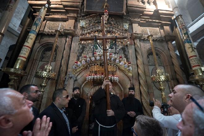 وحمل المشاركون ومعظمهم من مسيحيي القدس والأجانب، صلباناً خشبية كبيرة الحجم، وانطلقوا من "المدرسة العمرية" مارين بطريق الآلام في القدس وصولاً إلى كنيسة القيامة.