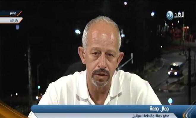 قال عضو حركة مقاطعة إسرائيل، جمال جمعة، إن" حركة المقاطة حاليا تسعى لتعزيز دورها الدولي والاقليمي فى مواجهة عمليات التطبيع الممنهح مع إسرائيل بما يتطلب جهد مع المؤسسات الحكومية، بالإضافة لمحاربة التطبيع على المستوى المحلي المتمثل في مطالبة الحملة بحل لجنة التطبيع المشكلة ، وكذلك حث منظمة التحرير على وقف التنسيق الأمني مع إسرائيل."