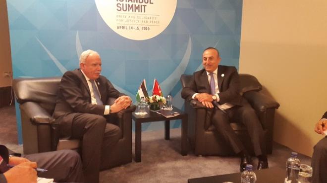 التقى وزير الخارجية الفلسطيني رياض المالكي مع نظيره التركي مولود شاويش أوغلو، في مدينة اسطنبول، وذلك على هامش الاجتماعات التحضيرية للقمة الثالثة عشر للقمة الإسلامية والتي تبدأ أعمالها يومي 14-15 نيسان/ أبريل الحالي.