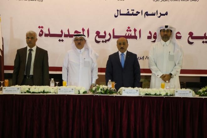 وقع وزير الأشغال العامة والإسكان الفلسطيني مفيد الحساينة، والسفير القطري محمد العمادي، عدد من عقود مشاريع الاعمار الجديدة، بحضور لفيف من الشخصيات الاعتبارية والحكومية، وأصحاب المكاتب الهندسين والمقاولين.