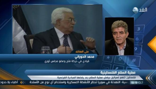 وأضاف الحوراني خلال لقاءٍ له بقناة "الغد" الإخبارية، أن "عملية السلام لا تضم فلسطين وإسرائيل فقط، وإنما بها أطراف أخرى كالمجتمع الدولي وفرنسا صاحبة مبادرة السلام"، مشيرا إلى أن المجتمع الدولي عليه أن يواجه الموقف الإسرائيلي الرافض لأى نقاشات تنتهى بجلوسة على مائدة المفاوضات.