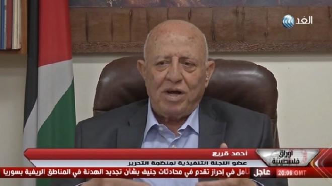 قال عضو اللجنة التنفيذية لمنظمة التحرير الفلسطينية، أحمد قريع إن "المبادرة الفرنسية التى دعت للمفاوضات تهدف لوضع القضية الفلسطينية على أجندة الأحداث العالمية."