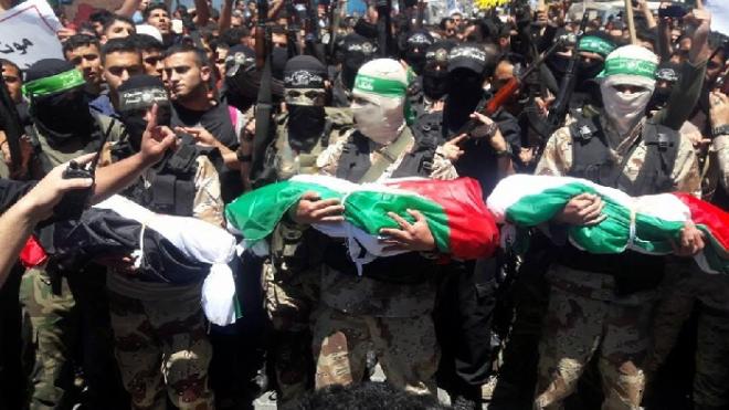 وسادت حالة من الحزن والغضب صفوف المشيعين الذين تقدمهم كتائب القسام الجناح المسلح لحركة حماس.