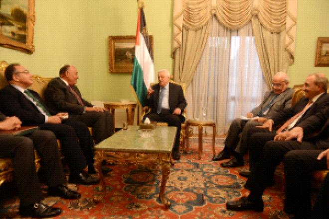 وأكد أن هناك عددا من المبادرات الدولية المطروحة ونعمل لدعمها لاستخلاص الحقوق المشروعة للشعب الفلسطيني، بتنسيق وثيق بيننا وبين القيادة الفلسطينية، مضيفا "أننا مهتمون دائما لسماع رؤية الرئيس محمود عباس بالنسبة للخطوات المقبلة، وما يجري من أوضاع في الأراضي المحتلة، بالإضافة إلى الجهود التي تبذل للتخفيف من معاناة الشعب الفلسطيني الشقيق"، مؤكدا أن مصر داعمة ومؤيدة لكل الخطوات التي تتخذها القيادة الفلسطينية.