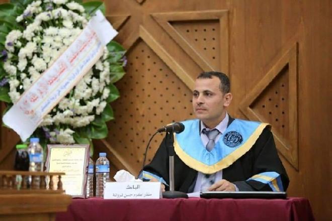 وتكونت لجنة المناقشة والحكم من الدكتور نسيم أبو جامع مشرفا ورئيسا والدكتور محمود صبرة مناقشا داخليا والدكتور عبد الحكيم الطلاع مناقشا خارجيا.
