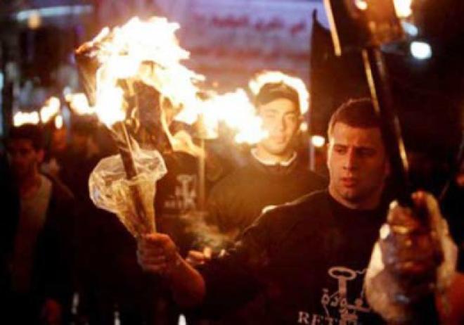 شارك مئات الفلسطينيين، في مسيرة بالمشاعل، مساء السبت، بمدينة رام الله، ، إحياءً للذكرى الـ68 للنكبة الفلسطينية.