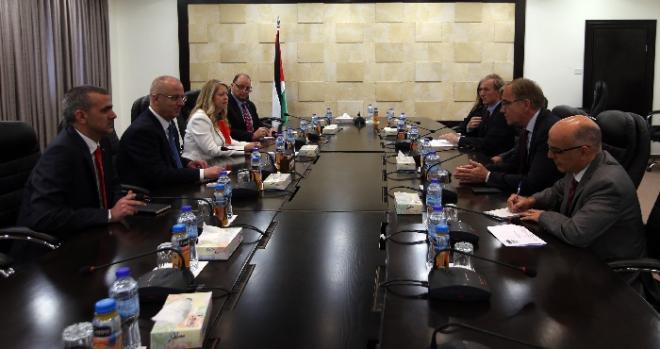استقبل رئيس الوزراء الفلسطيني رامي الحمد الله، اليوم الثلاثاء في مكتبه برام الله، وفدا من البرلمان الألماني، بحضور ممثل ألمانيا لدى فلسطين بيتر بيرفيرث، حيث أطلعهم على أخر التطورات السياسية والانتهاكات الاسرائيلية.