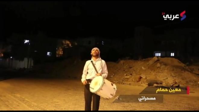 يخترق صوت المسحراتي معين صالح حمام، من سكان مدينة غزة؛ سكون الليل، وهو يطوف في شوارع مدينة غزة وأزقتها؛ ليوقظ الفلسطينيين لتناول طعام السحور.