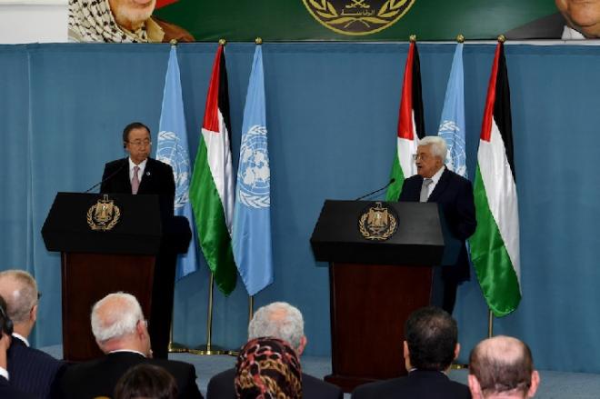 من جانبه، أعرب الأمين العام للأمم المتحدة بان كي مون عن سعادته لزيارته رام الله مرة أخرى، شاكرا الرئيس محمود عباس ورئيس الوزراء رامي الحمد الله على "ترحيبهما وضيافتهما الجميلة".