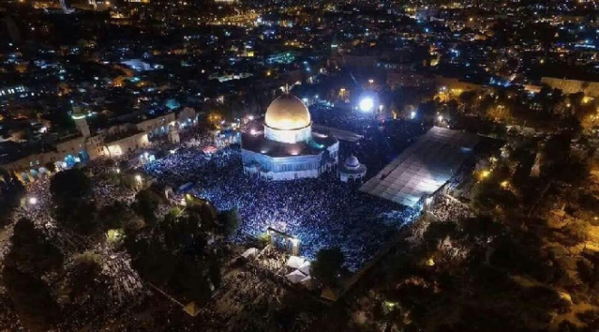 أحيا نحو 400 ألف مصل، الليلة الماضية، ليلة القدر (السابع والعشرين من شهر رمضان) في رحاب المسجد الأقصى المبارك.