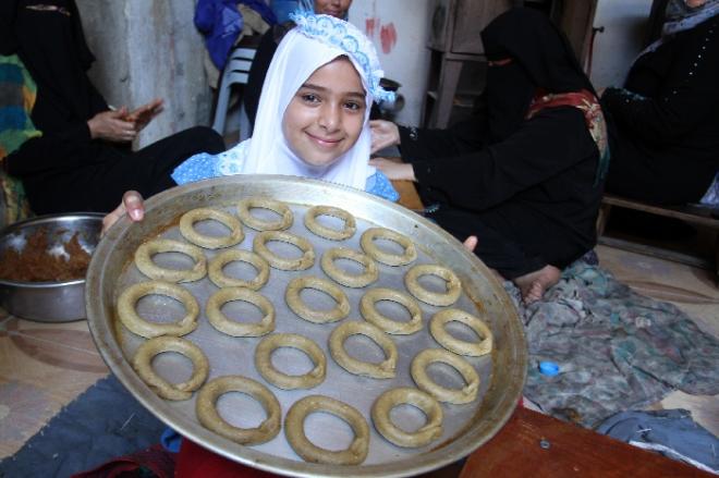 يُشكل عيد الفطر سعيد فرصةً ثمينة للأربعينية مرفت الحمايدة وأسرتها، التي تقطن مخيم الشابورة للاجئين الفلسطينيين وسط محافظة رفح، جنوبي قطاع غزة، كونهم يبيعون خلاله كميات كبيرة من حلوى العيد "الكعك، المعمول".