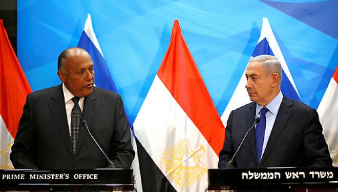 وأجرى شكري محادثات مطولة خلال الزيارة مع رئيس الوزراء الإسرائيلي بنيامين نتانياهو تناولت العديد من الملفات المرتبطة بالجوانب السياسية في العلاقات الثنائية والأوضاع الإقليمية. وكان الناطق باسم وزارة الخارجية المستشار أحمد أبو زيد قال إن المحادثات ستعنى بالتركيز على القضية الفلسطينية وكيفية تفعيل قرارات الشرعية الدولية والاتفاقات والتفاهمات التي سبق أن توصل إليها طرفا النزاع، ووضع أسس ومحددات لتعزيز بناء الثقة بين الفلسطينيين والإسرائيليين تمهيداً لخلق بيئة مواتية داعمة لاستئناف المفاوضات المباشرة بينهما بهدف الوصول إلى حل شامل وعادل ينهي الصراع ويحقق هدف إنشاء الدولة الفلسطينية المستقلة على حدود 1967 وعاصمتها القدس الشرقية.