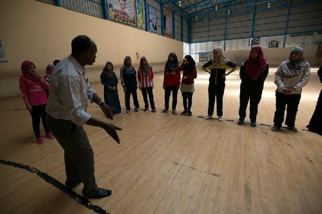بخفه ورشاقة عالية تتنقل في ساحة الملعب المغطى التابع لوزارة الشباب والرياضة، حاملة بيدها كرة صغيرة، تحاول تسديدها في شباك فريق الخصم، الذي يضم عددًا من الفتيات اللواتي يقاربنها في العمر، وما إن تنتهي تعود للتدريبات الأخرى برفقة نحو "18فتاة" وافقنّ على الالتحاق بالفريق.