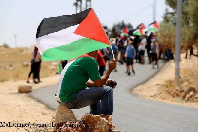 وشارك في المسيرة نشطاء سلام ووفود دولية واهالي القرية.