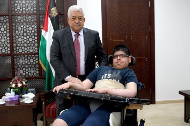 أبو مازن يستقبل الطفل المتفوق أصيل المدني