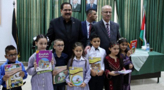 أطلق رئيس الوزراء رامي الحمد الله، في مقر وزارة التربية والتعليم اليوم الأحد، النسخة الأولى من المنهاج الفلسطيني الجديد للصفوف من الأول وحتى الرابع أساسي، ووضع حجر الأساس لمبنى التعليم العالي، وافتتح المبنى الجديد لوزارة التربية والتعليم، ودشن نظام الطاقة الشمسية، وافتتح قاعة الشهيد ياسر عرفات في الوزارة.