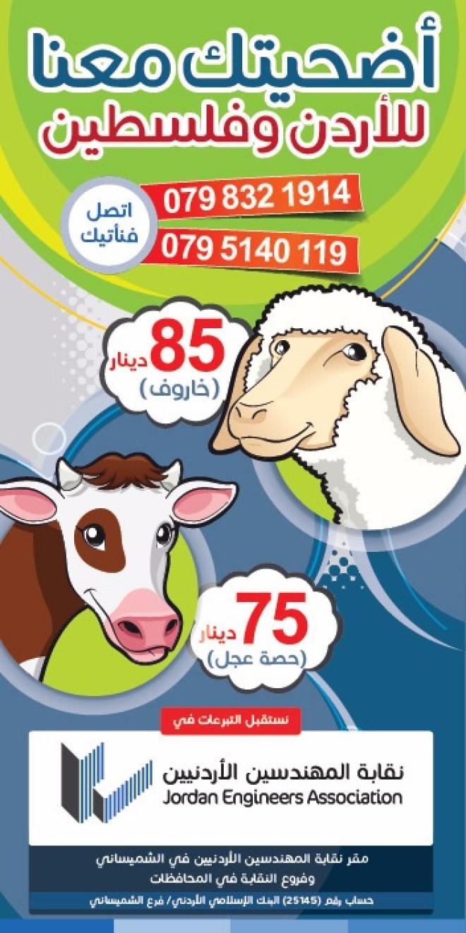 أعلنت نقابة المهندسين الأردنيين عن إطلاقها حملة الأضاحي للعام 2016، والتي تحمل اسم "أضحيتك معنا للأردن وفلسطين".