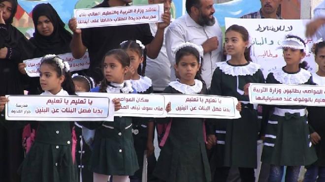هذا الحال المأساوي لهؤلاء الطلاب، الذين يرفضه الأهالي، دفعهم في ظل التهميش من قبل الجهات المُختصة، لتنظيم وقفة احتجاجية أمام بوابة المدرسة للمطالبة ببناء مدارس جديدة لإنهاء أزمة الدراسة في مدرسة واحدة، وتخفيف الازدحام ومنع الاختلاط بين الجنسين.