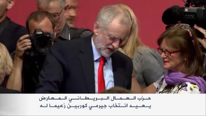 أعيد انتخاب جيرمي كوربن زعيما لحزب العمال أكبر أحزاب المعارضة في بريطانيا اليوم السبت. مسجلا تفوقا على منافسه الوحيد أوين سميث.