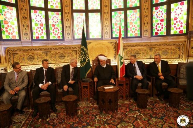 التقى وفد اللجنة الرئاسية العليا لشؤون الكنائس في فلسطين برئاسة عضو اللجنة التنفيذية لمنظمة التحرير الفلسطينية حنا عميرة اليوم الثلاثاء، مفتي الجمهورية اللبنانية الشيخ عبد اللطيف دريان وجرى بحث الاوضاع في الاراضي الفلسطينية والمنطقة العربية.